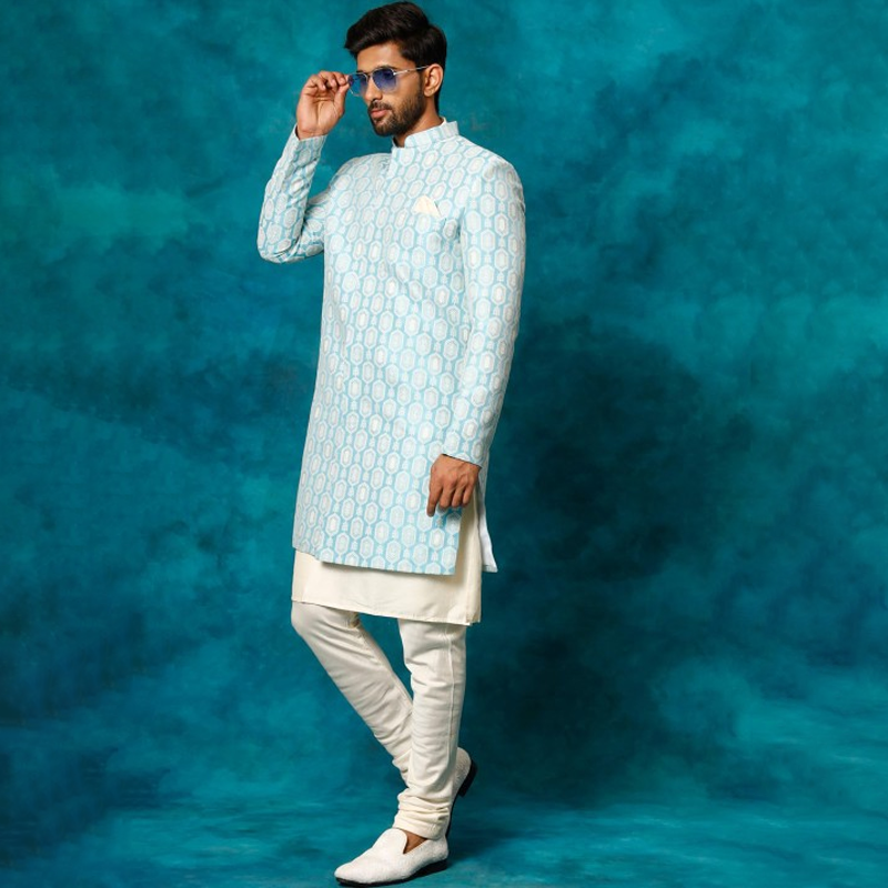 Men Self-Design Cotton Indowestern Sherwani Set