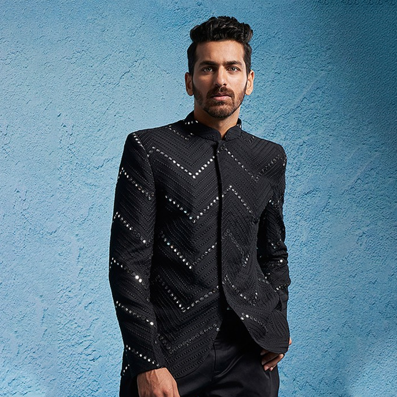 Slim Fit Mandarin Collar Bandhgala Jodhpuri Blazers