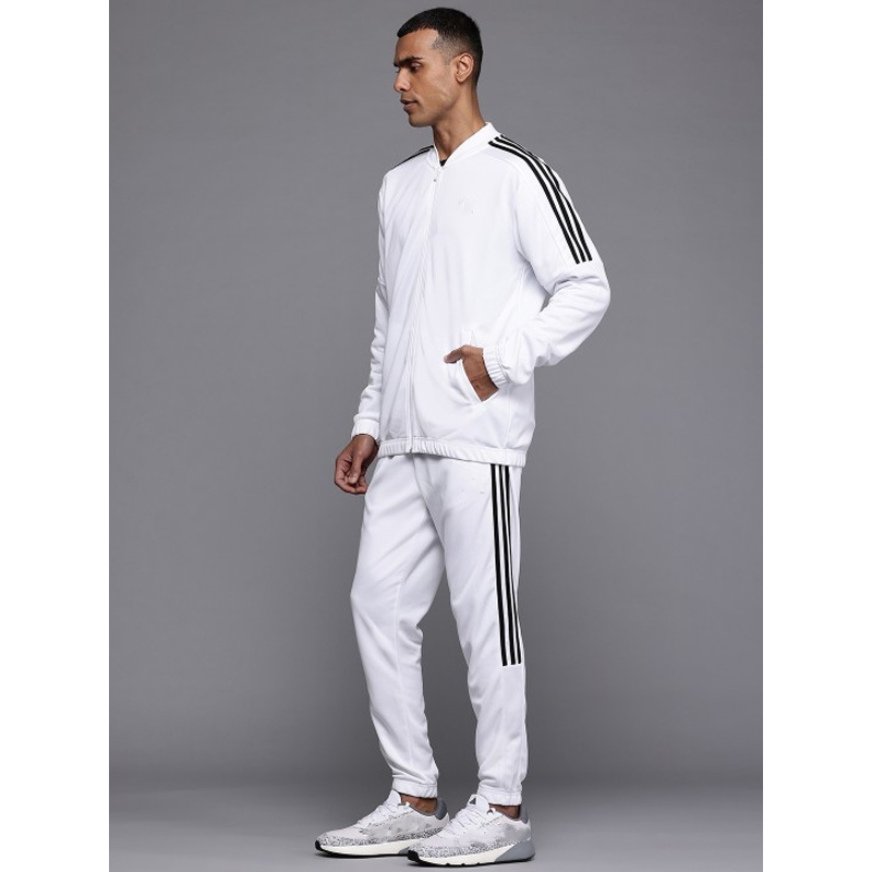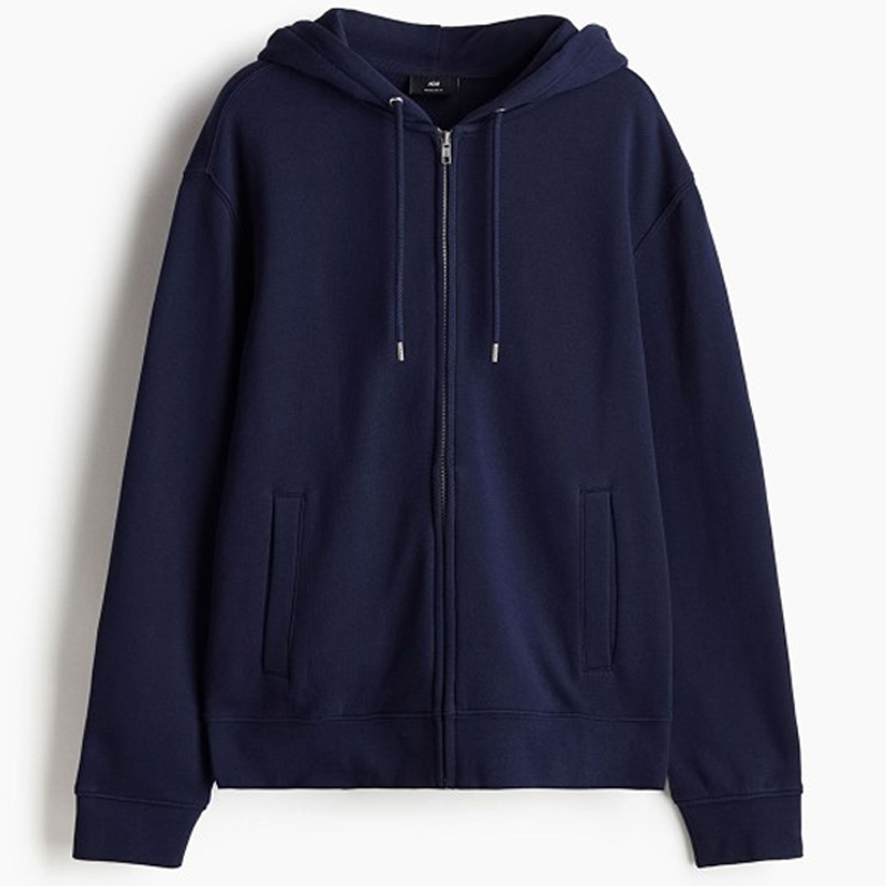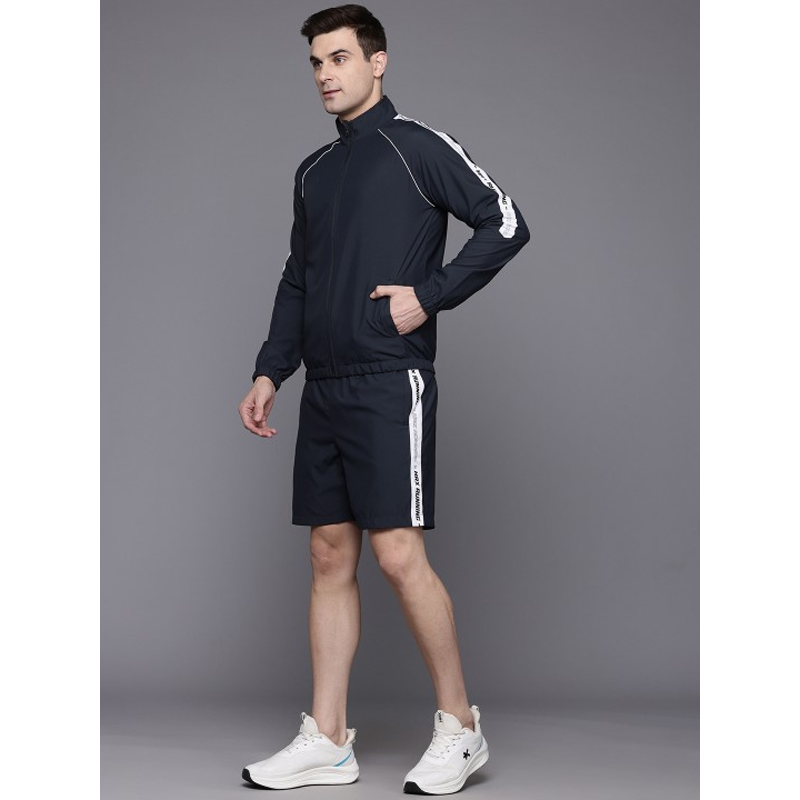 Men White & Navy Blue Colourblocked Hooded Sweatshirt