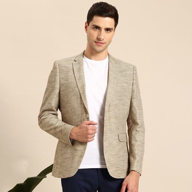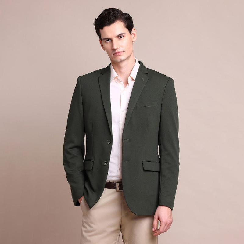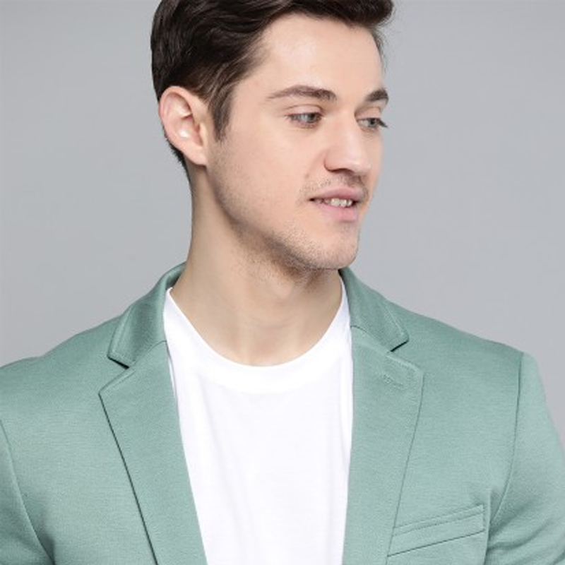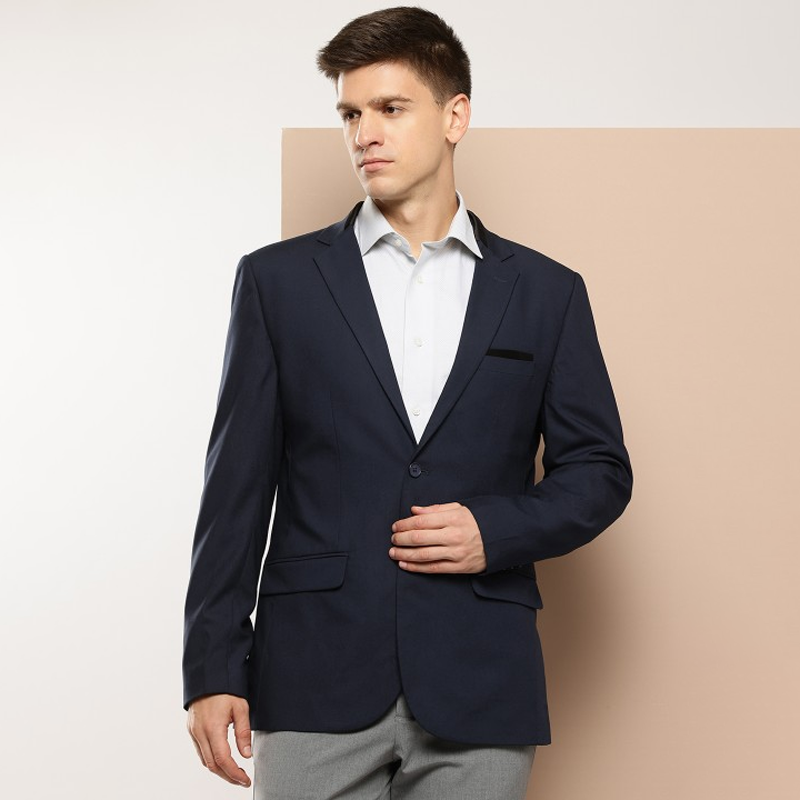 Men Navy Blue Solid Single-Breasted Regular Fit Casual Blazer