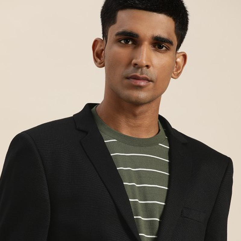 Men Black Slim Fit Solid Single Breasted Formal Blazer