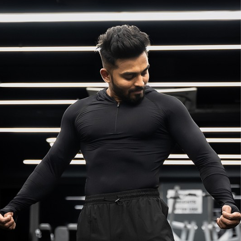 Men Nylon-Spandex Blend Assassin Compression Body Fit Gym Hoodie