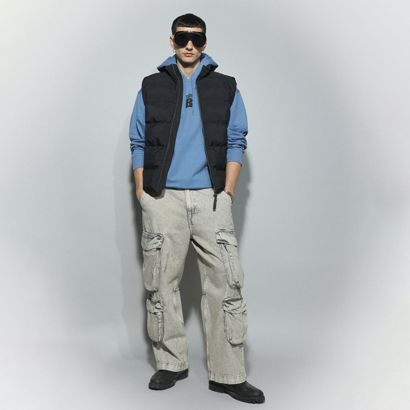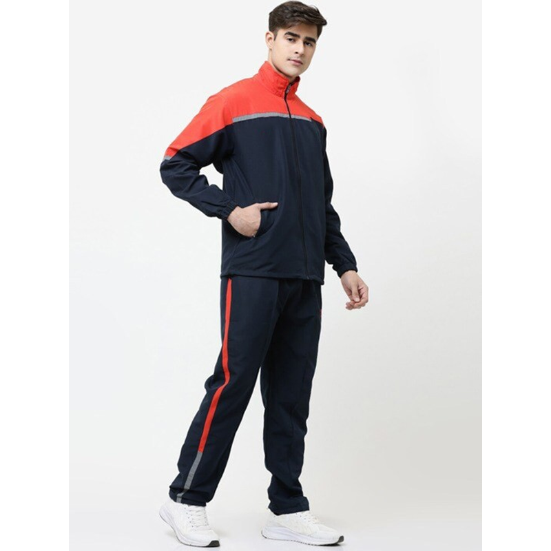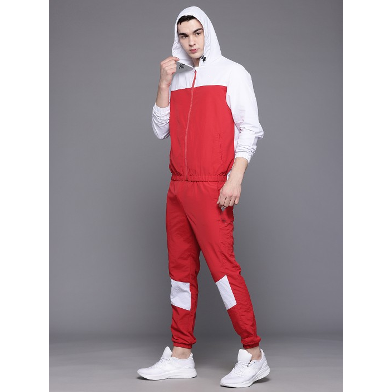 Men White & Navy Blue Colourblocked Hooded Sweatshirt