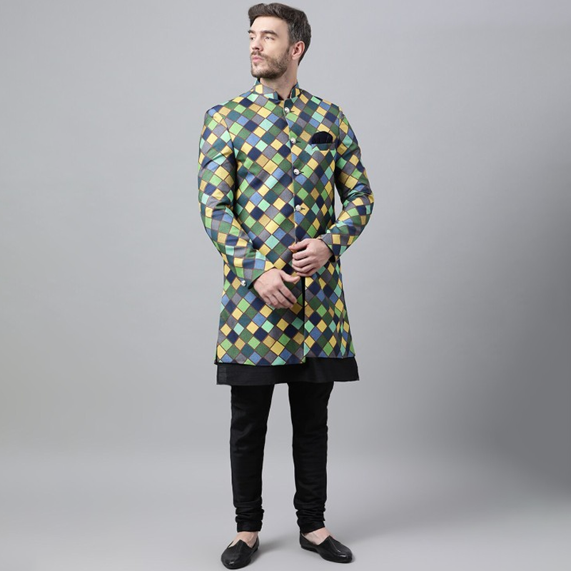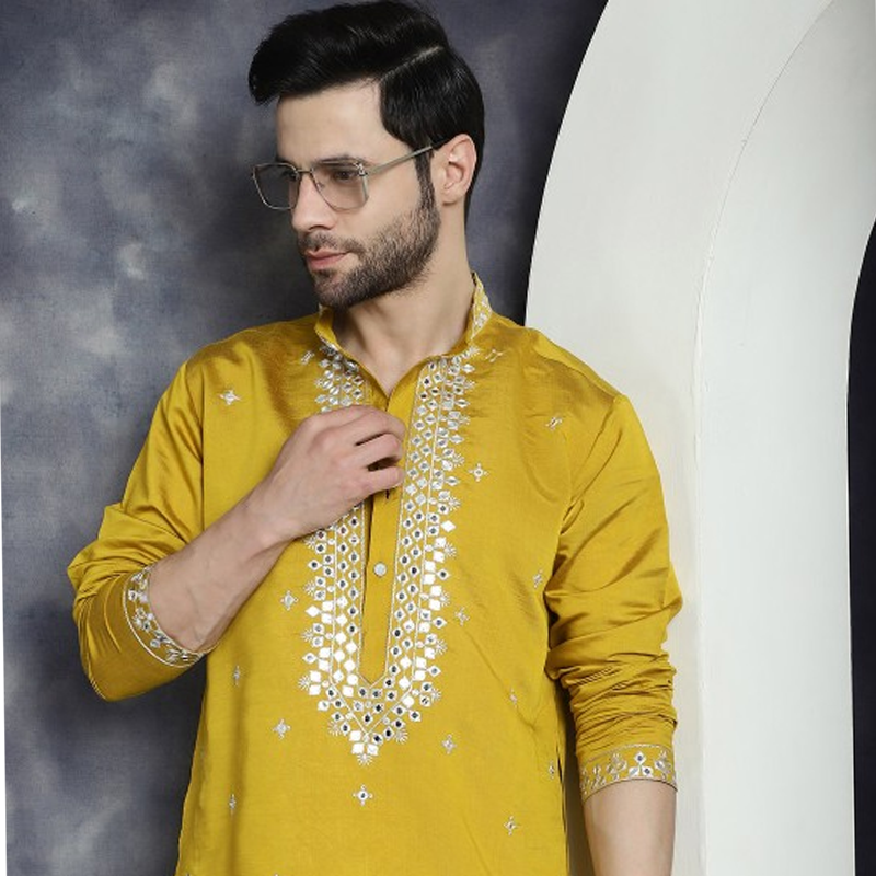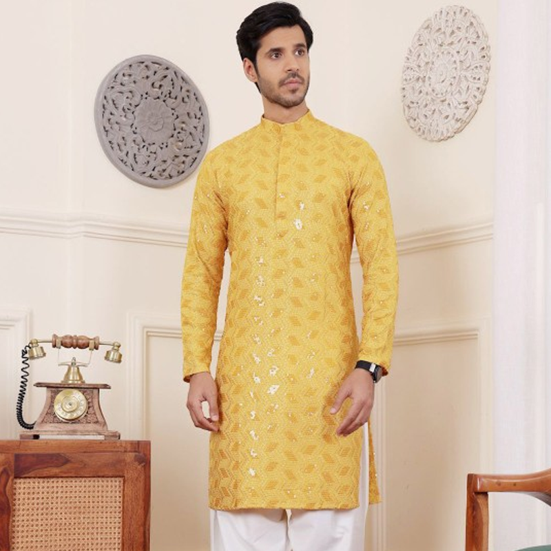 Men Yoke Design Flared Sleeves Thread Work Kurta