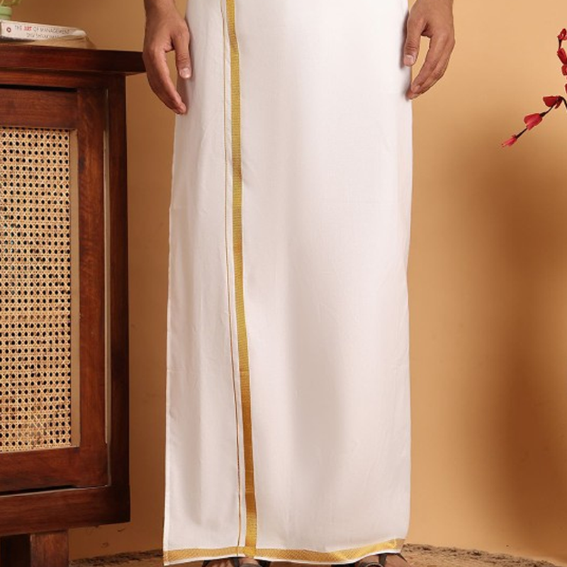 Thread Work Dobby Mandarin Collar Pure Cotton Straight Kurta