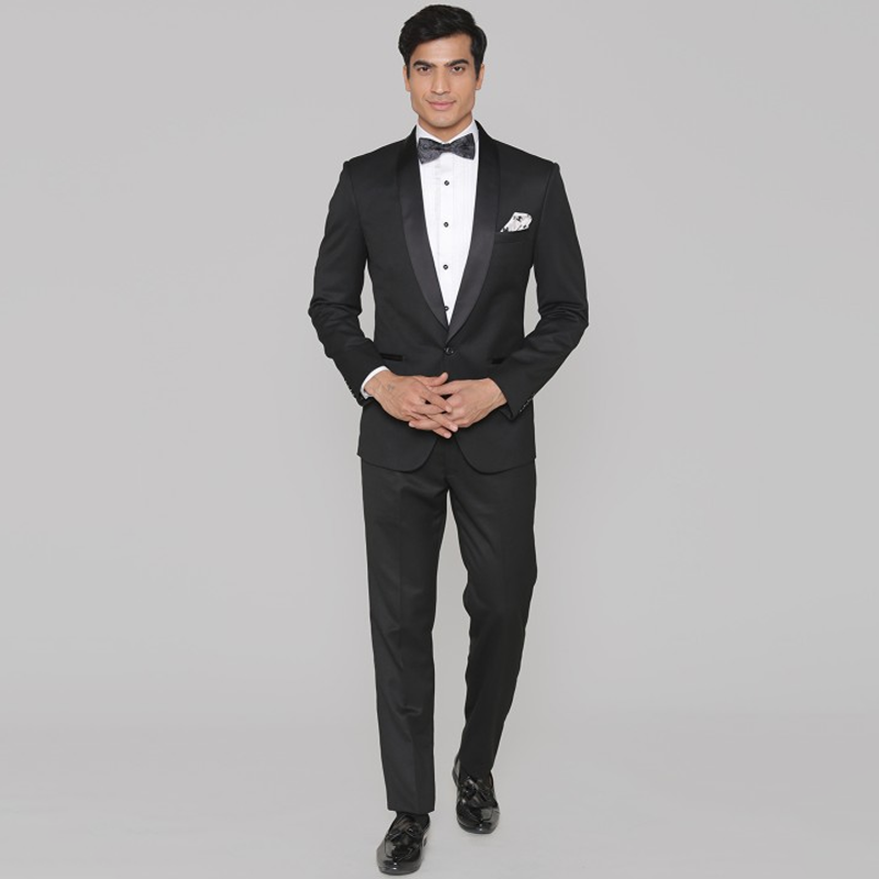 Men Black Floral Patterned Single-Breasted Slim Fit Tuxedo
