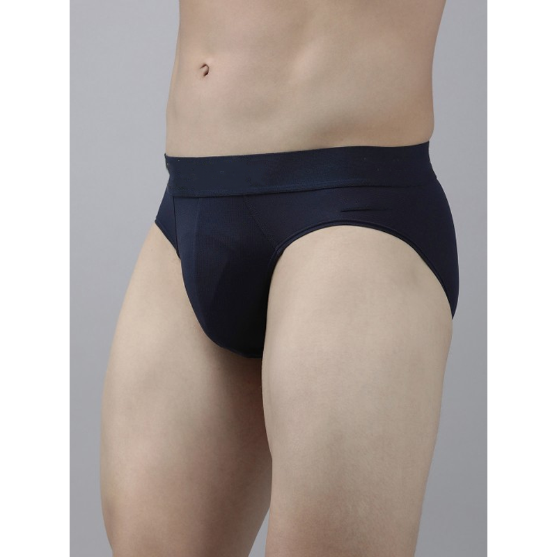 Men Dark Navy Solid Swift Dry High Stretch Mesh AIR Series Active Brief